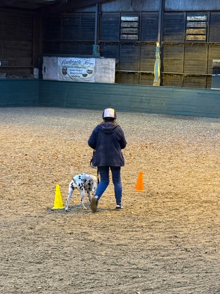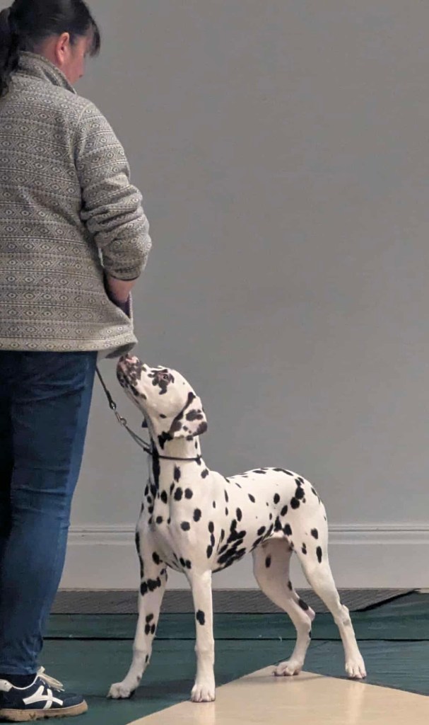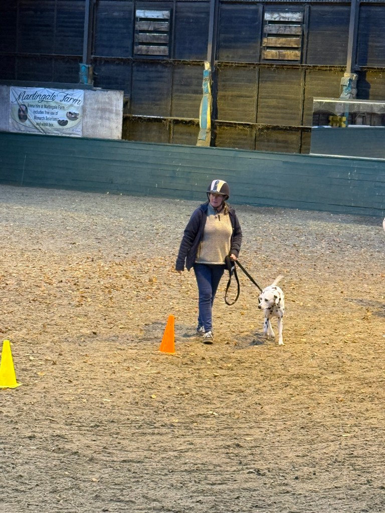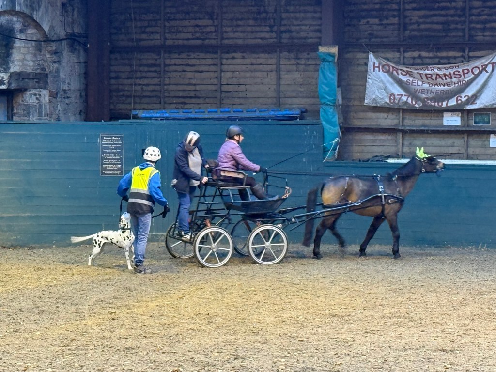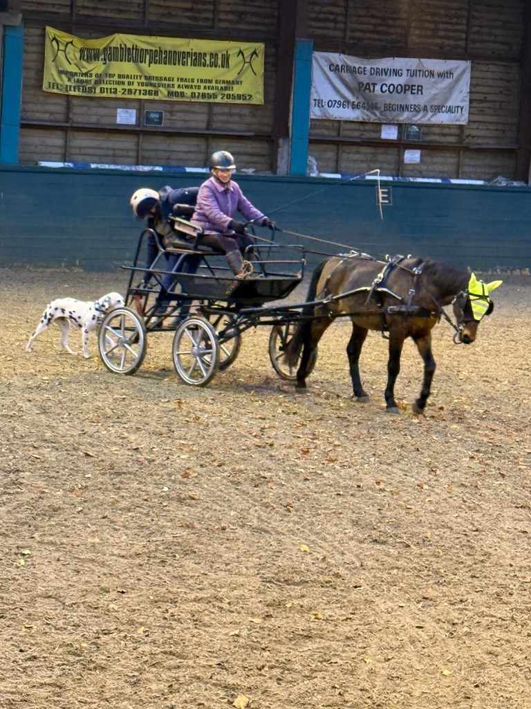 As Lottie finds being in a crate at shows uncomfortable on her back I have been looking for something else to do with her, and the opportunity to do some carriage training in the north came up. So I signed us up for a 90 minute session with 9 other dals.