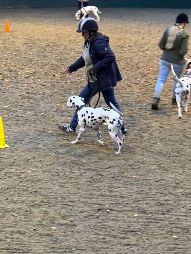 Dalmatians were bred to follow carriages in the Georgian period. We are lucky to have the Carriage Dog Society and the provide training and carriage dog trials.