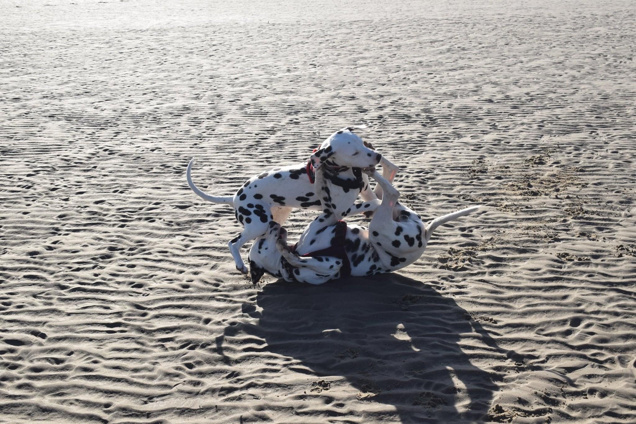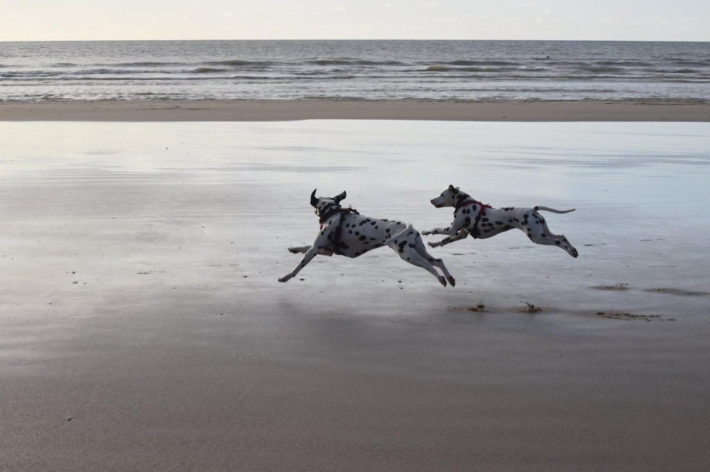 The Spots loved the beach, even if it was a bit breezy and their ears kept trying to blow off their heads.