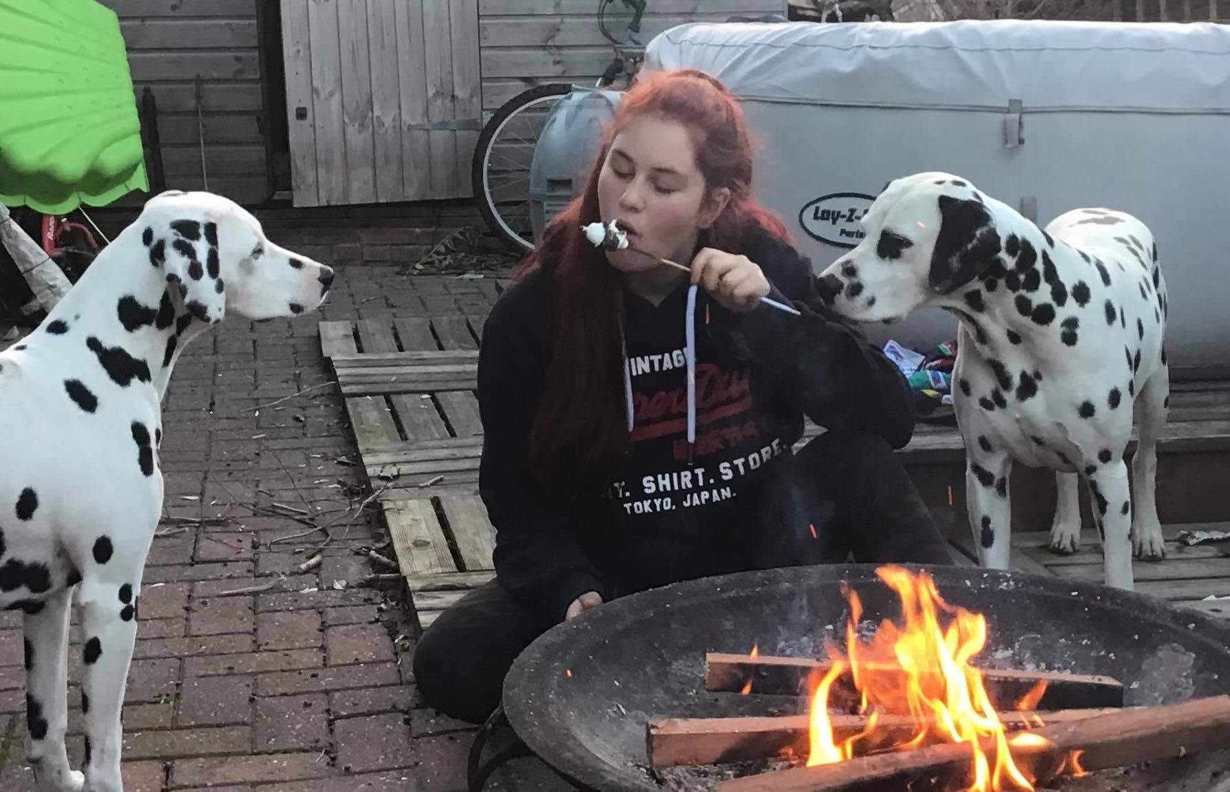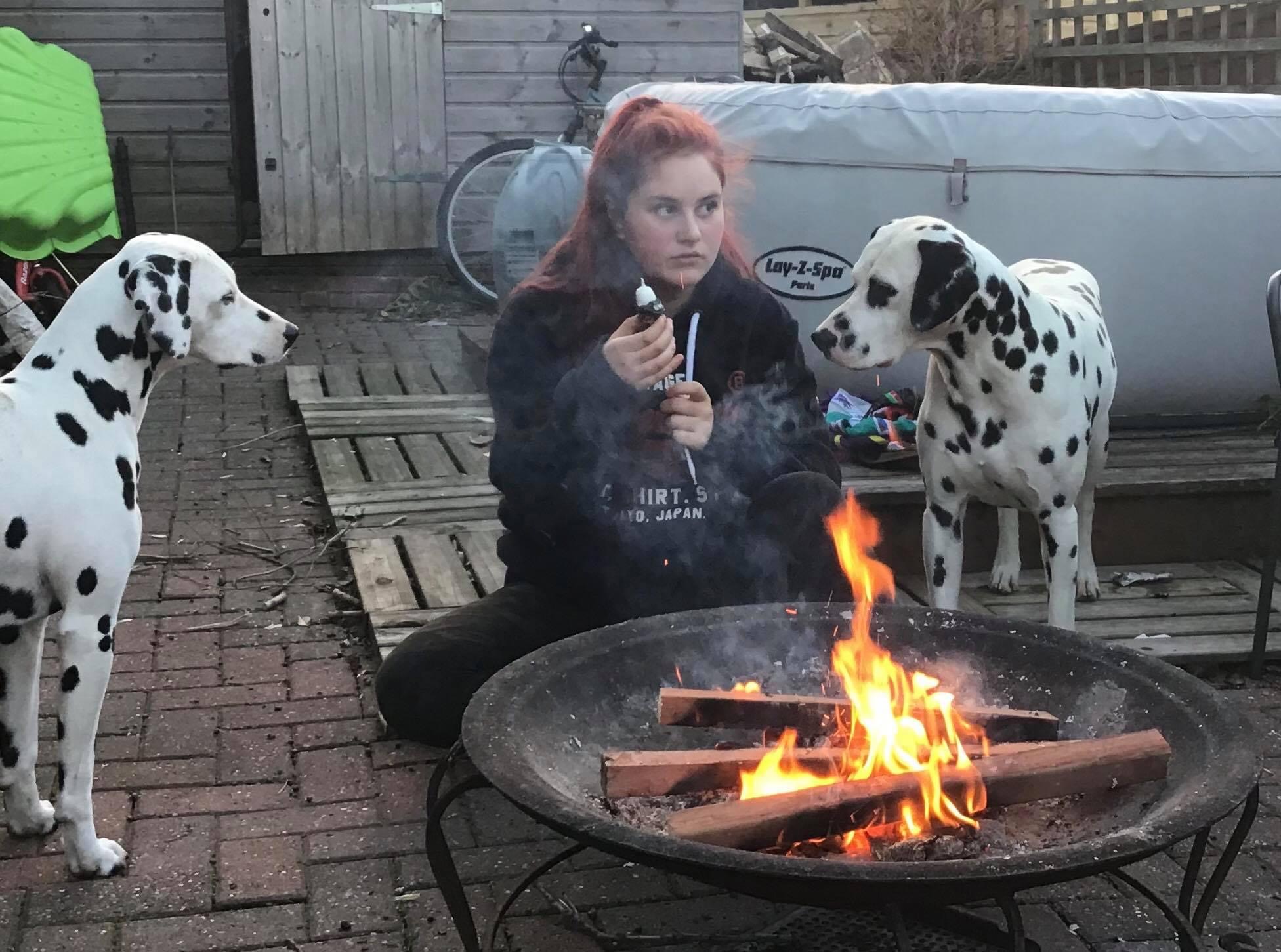 The girls are in the Scout movement and took part in the Great Indoor Weekender, basically a camp at home. They joined in the virtual campfire, and it is compulsory to have toasted marshmallows. Mac tried very hard to get Ellie to share … she ignored all his efforts, and he tried and tried, can’t fault his persistence!