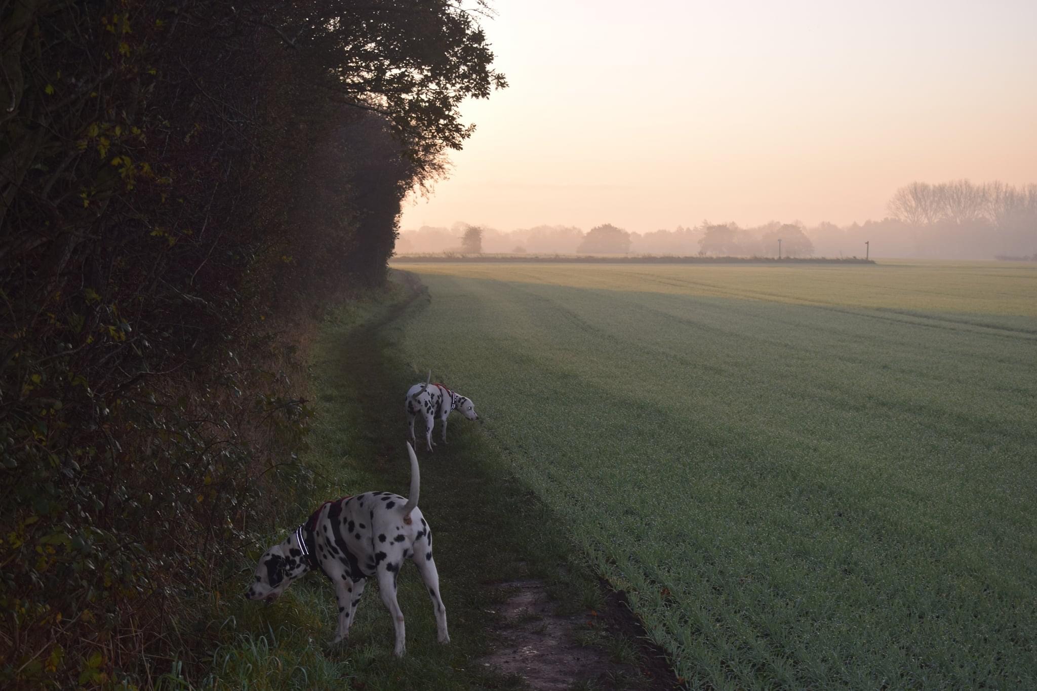As am quite an anti-social person, I like to walk the Spots out first thing in the morning. At this time of year that means the sun usually is just waking up, so we get beautiful sunrises to watch on our walk.