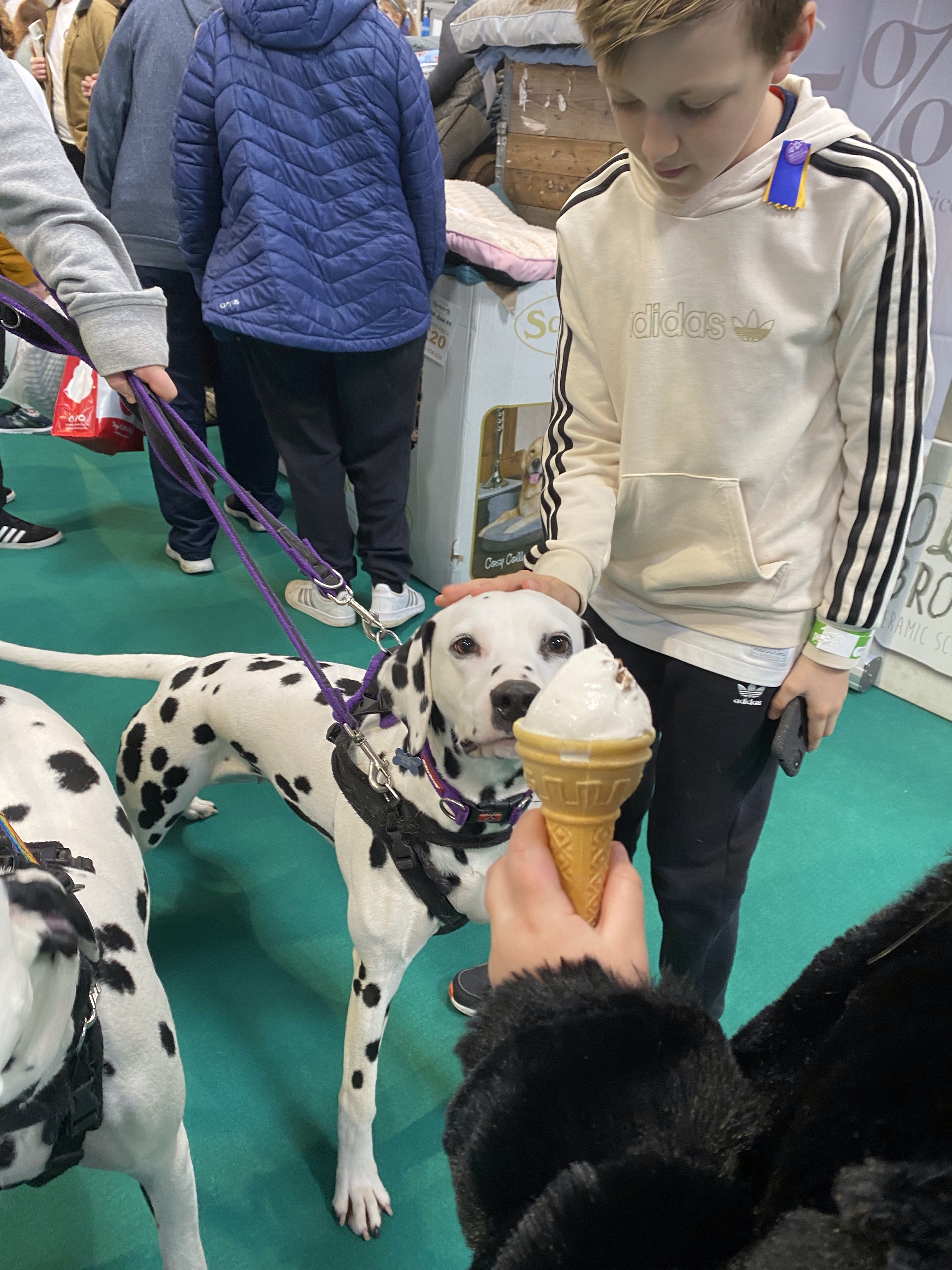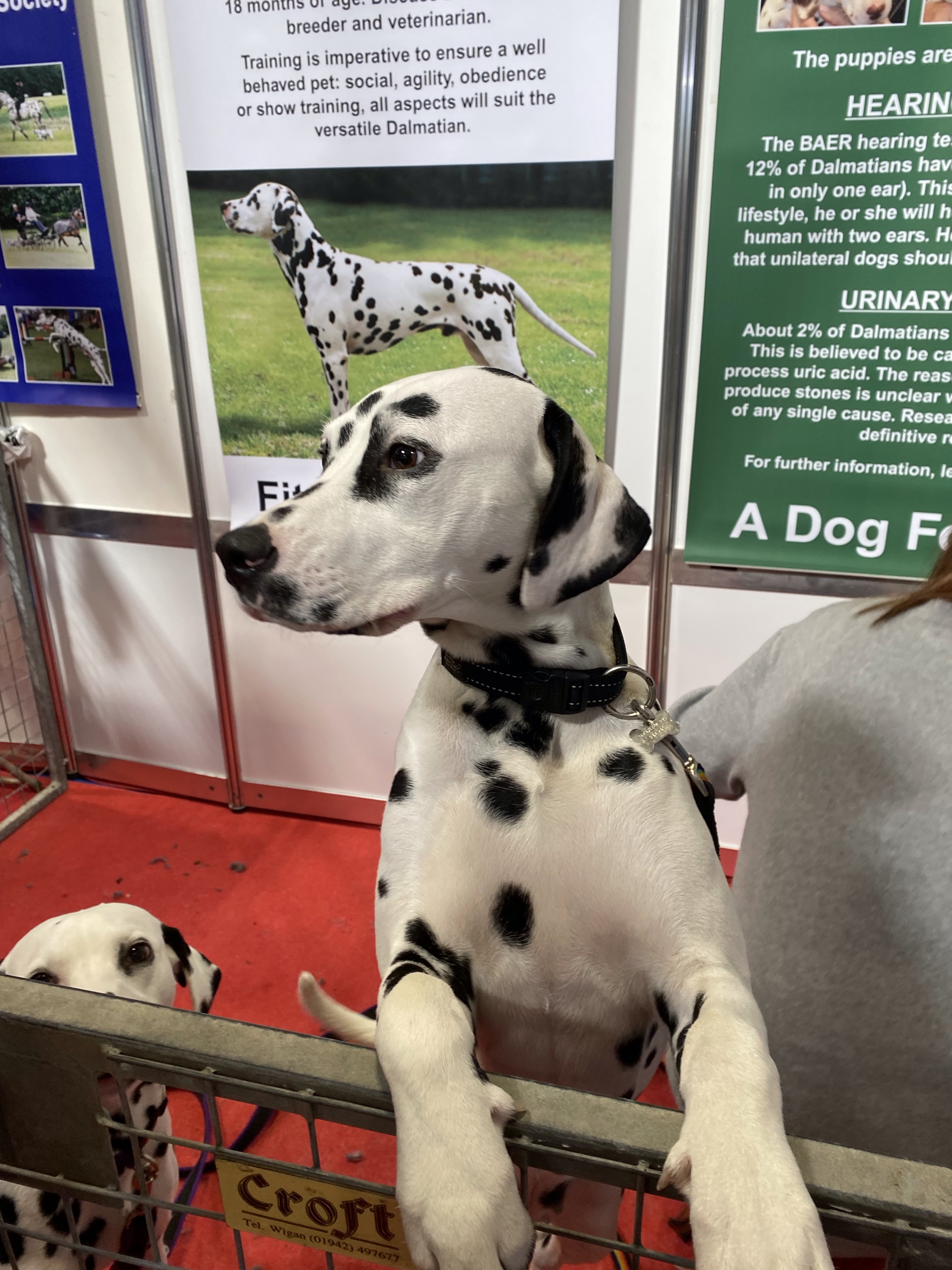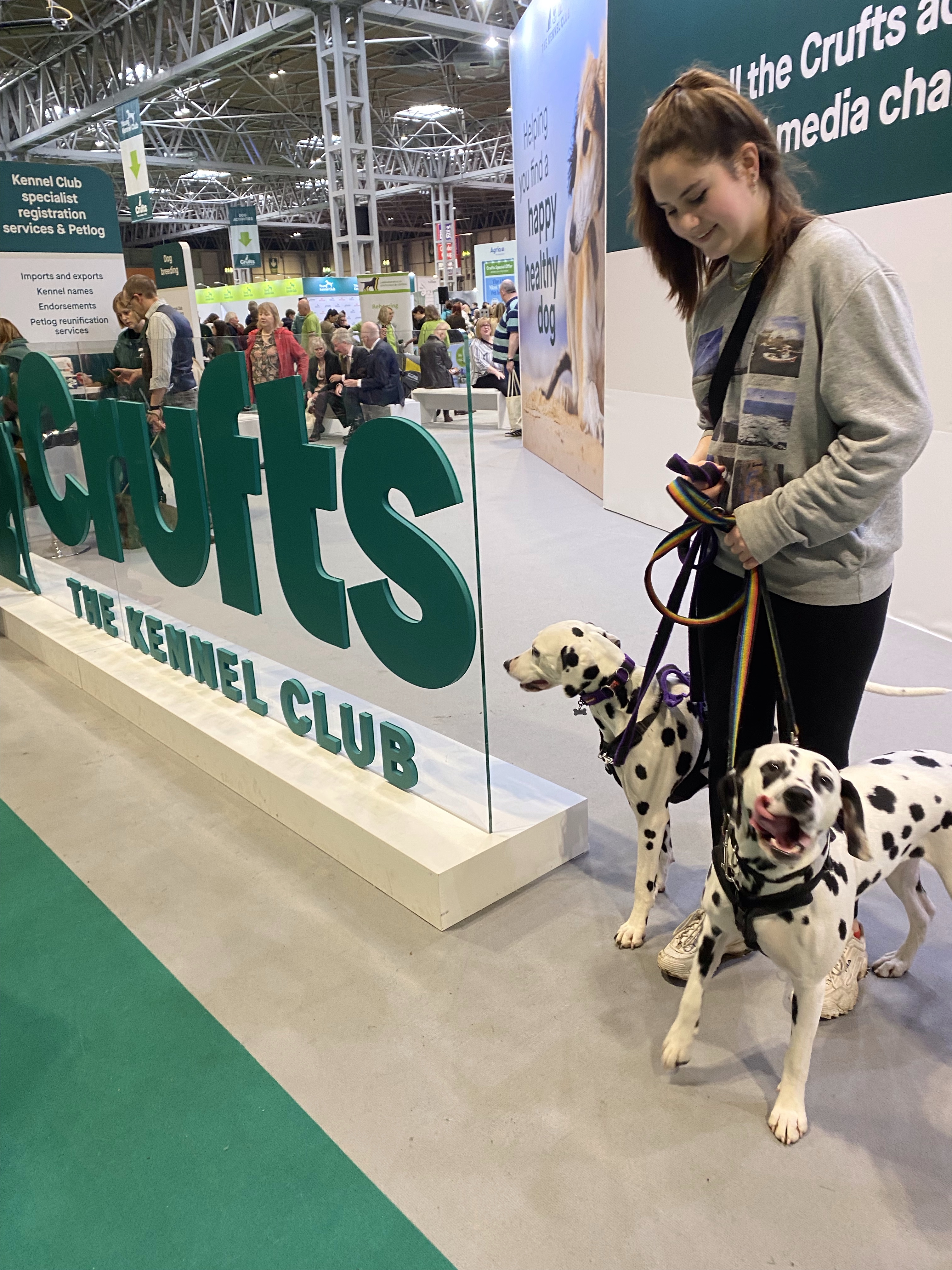 A big part of Crufts for the general public visiting is the Discover Dogs area, where most breeds are available for them to say hello to. On Sunday Lottie and Seren did a shift on the Dalmatian section. We met lots of people, the girls got lots of fusses, Lottie blagged a chip or two and almost an ice cream!
