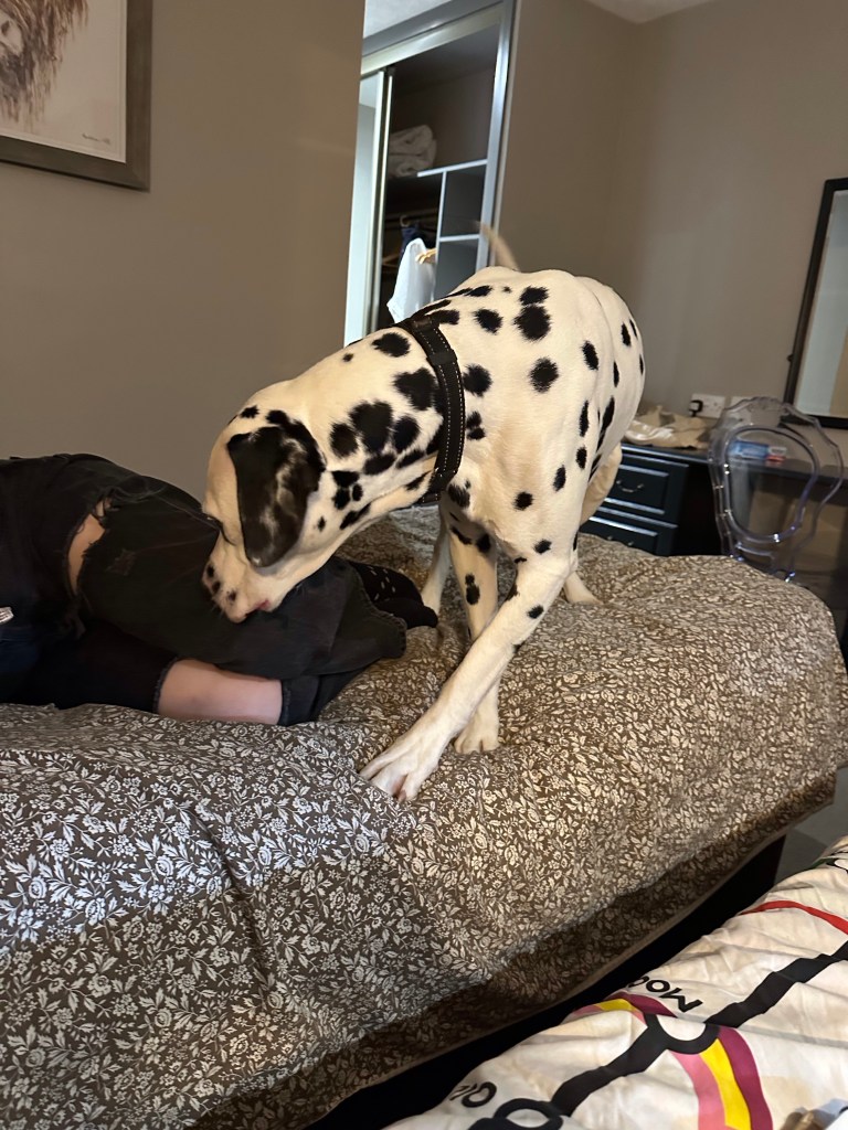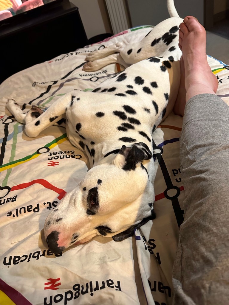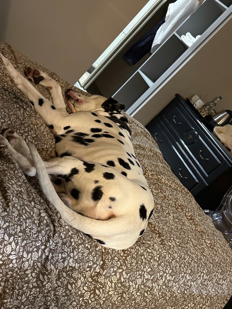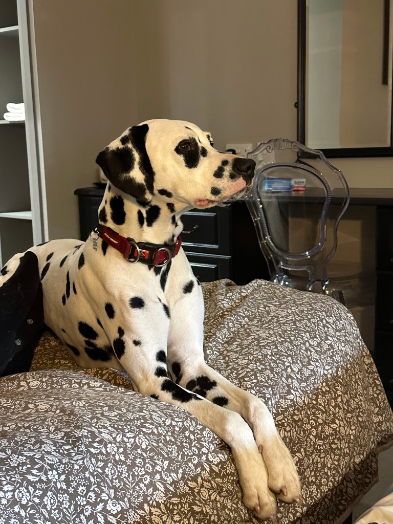 The dogs love a hotel room, they don’t get to sleep with us at home. So beds are novel and exciting. Seren rocks the hotel room now, taking over the bed and sprawling! Mac is not as used to the hotel experience, but quickly learned!