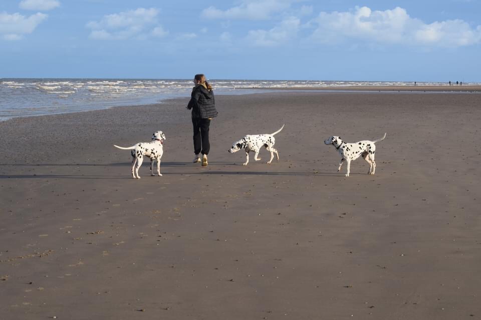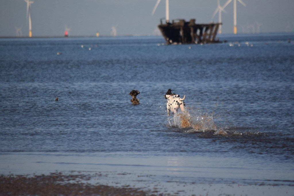 With the weather being so hot we decided to head to the beach for an early morning run, let the Spots let of some steam, but keep cool in the sea. The tide was at it’s lowest so we had a bit of walk down to the sea. The Spots loved chasing each other and the wading birds! They spent a happy 2 hours messing around in the water and along the shore line.