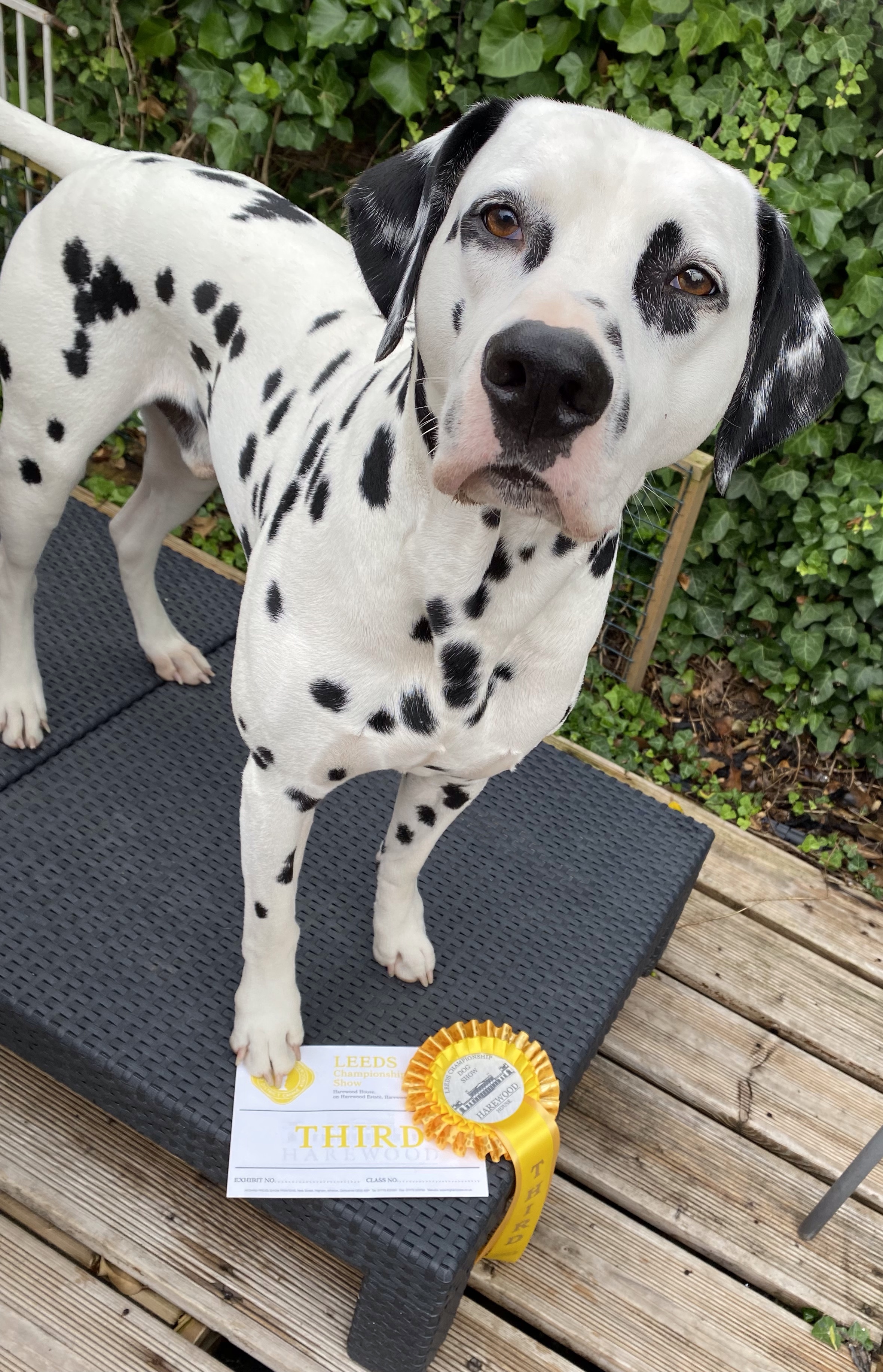 Frank Kane (he of Crufts fame) was judging Dalmatians at Leeds, so I decided to take all three to the show. The girls showed their socks off in big classes, Mac was less enthusiastic on the run, so didn’t get as highly placed as he could have done, but that life.