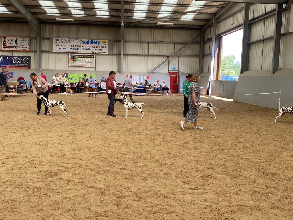 We kicked off with the Lancaster and District Canine Society show, and the Dalmatians were judged by breed Specialist Hannah Patrick. In the Junior class Seren came second, just a bit bouncy on the run. She was then called back to compete for Reserve Best of Breed and she got it, so really proud of her. She was much more settled on her second run.