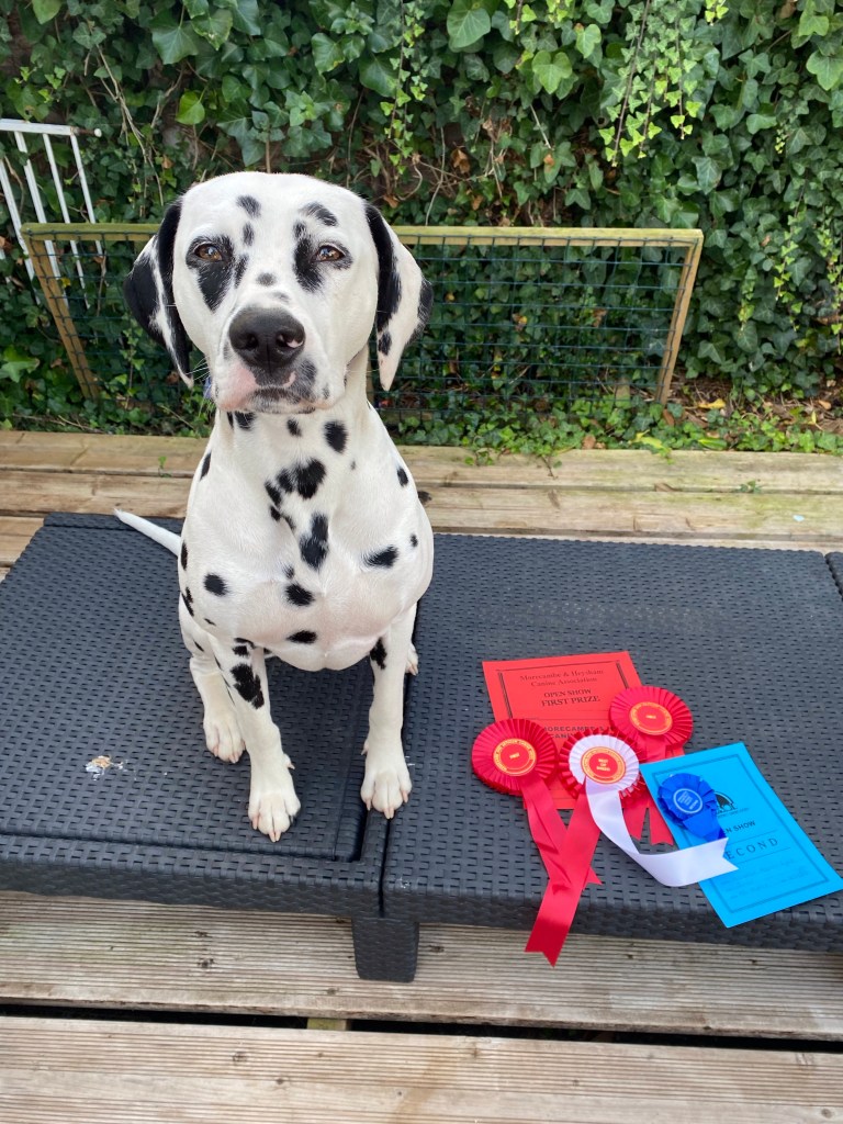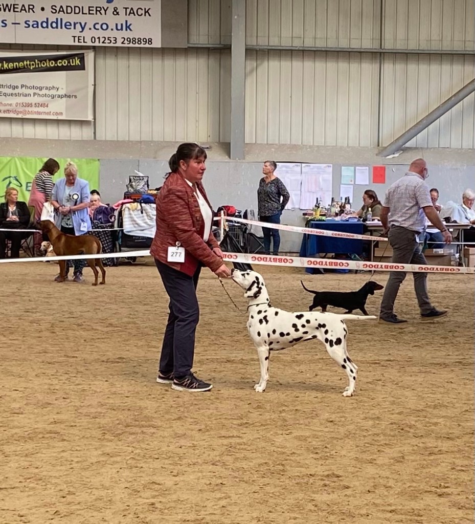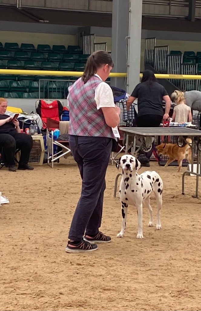 The Morecombe and Heysham Canine Association Dalmatian classes followed. Seren won her Junior class and ultimately won Best in Breed. She sadly didn’t get placed in the Utility Group, but she showed her socks off.