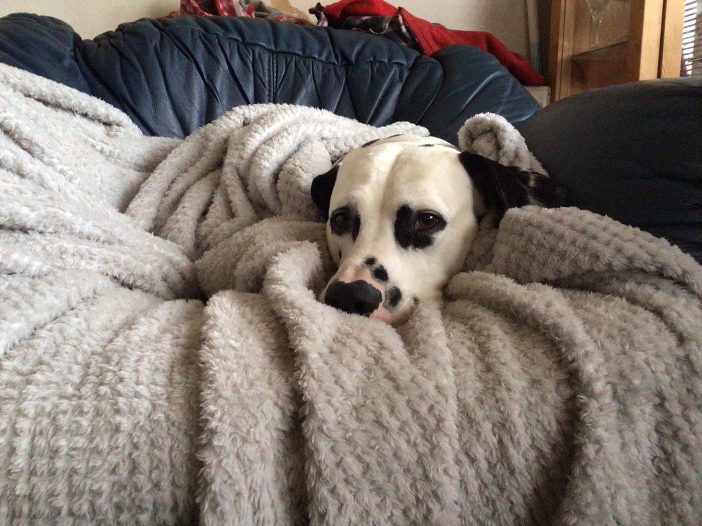 This is what happens when you leave the room … the Spot pinches your warm chair and snuggles up in your blanket! No respect for my space at all! I think he might have had some help and encouragement from a teenage daughter! He looked so comfy, I decided to leave him there.