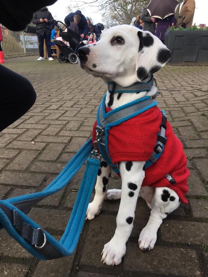 So the husband does a. Bit of 17th century battle reenactment which means our Spots need to be accustomed to crowds, bangs, smells and noise. Today we took Miss Lottie Lou to Nantwich to watch a parade and battle. It involved lots of people, which meant lots of legs to manoeuvre round, the sound of marching feet and drums, horses and cheering. We had lunch in a pub, so more smells, including bacon, and people wanting to say hello. We were very strict with who and how hellos were done as we don’t want Lottie thinking she can say hello to everyone she meets.