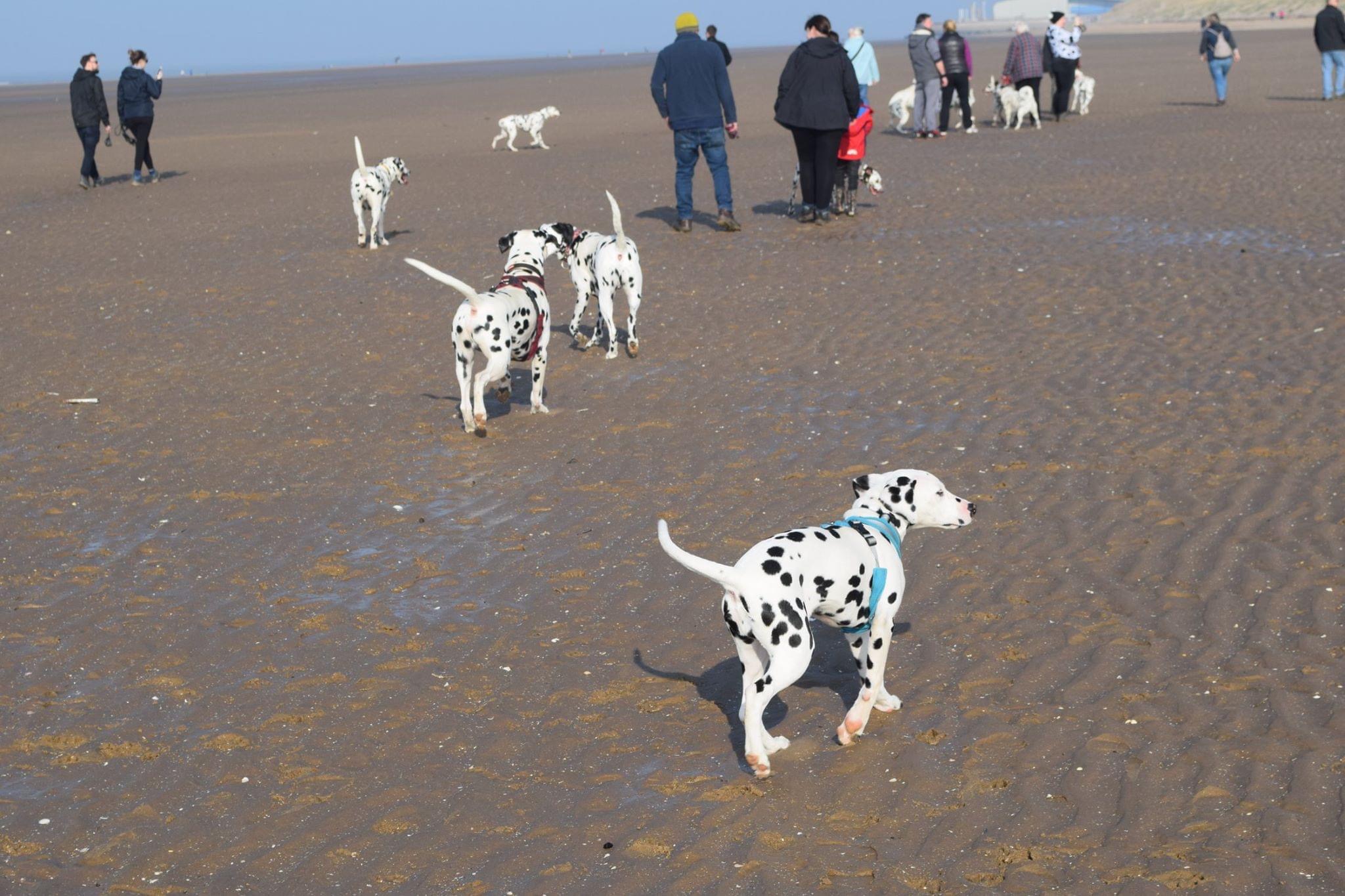 I don’t often go on Group walks, it can spell disaster for some dogs, so many off lead dogs all around each other. But as this one was at the beach, Lytham St Anne’s, I thought there would be plenty of space. It would also give Lottie an experience of being around a big group of dogs, something she will need to cope with if she is going to be shown.
